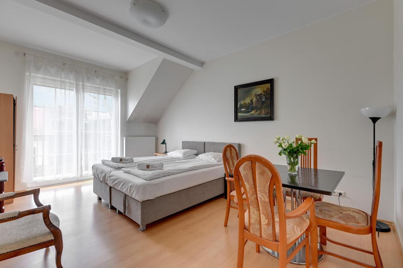 W apartamencie zapewniono kilka sypialni (2), łazienkę (1), pościel, ręczniki, jadalnię oraz kuchnię z pełnym wyposażeniem. Do dyspozycji Gości jest także telewizor z płaskim ekranem z dostępem do kanałów kablowych oraz balkon z widokiem na ogród.