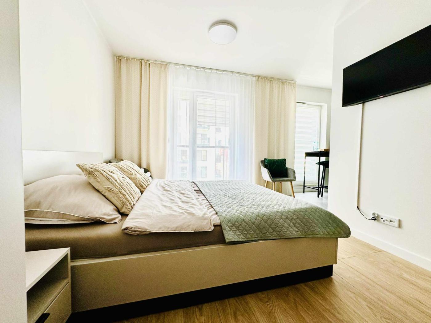 Apartament z 1 sypialnią. This apartment comprises 1 bedroom, a kitchenette and 1 bathroom with a shower and a hairdryer. Guests can make meals in the kitchenette that comes with a stovetop, a refrigerator, a dishwasher and kitchenware. Featuring a balcony with city views, this apartment also provides a tea and coffee maker and a flat-screen TV. The unit offers 1 bed. Apartament - 2 osobowy. Powierzchnia pokoju ok.: 23 mkw.